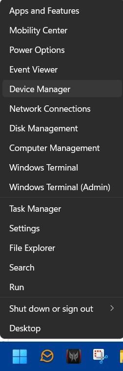 - 通过右键单击开始菜单并从出现的设置列表中选择设备管理器来打开设备管理器。