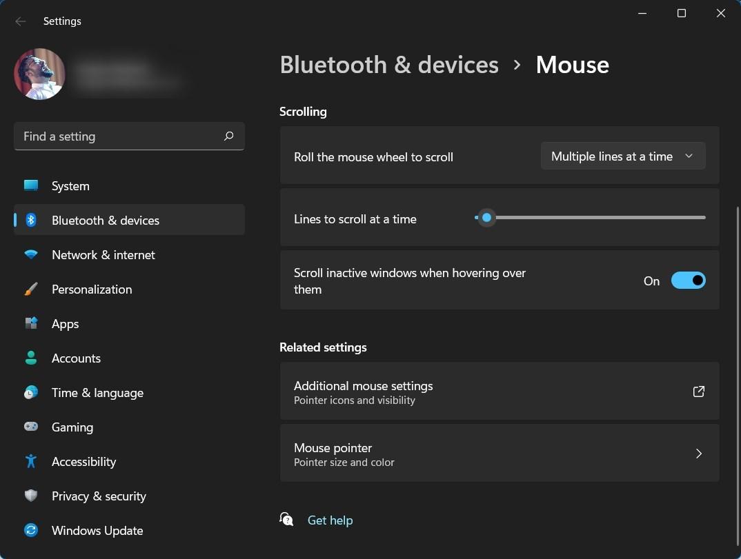 - 在“鼠标设置”页面上,向下滚动,然后在“相关设置”下,单击“其他鼠标设置”选项。