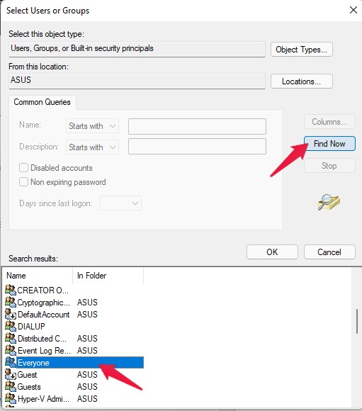 - 单击“立即查找”并选择“所有人”。然后点击确定。