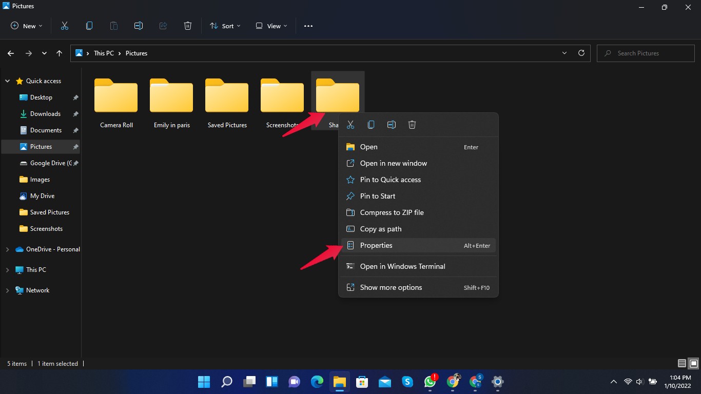 - 导航到您要访问的文件或文件夹。右键单击它并选择Properties。