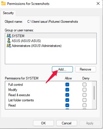 - 单击“应用”,然后单击“确定”以保存更改并授予安全权限。