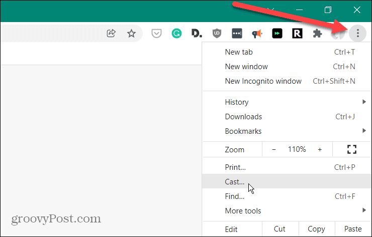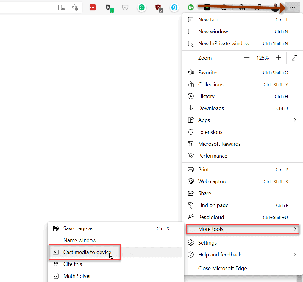 - 从菜单中,单击更多工具 > 将媒体投射到设备。