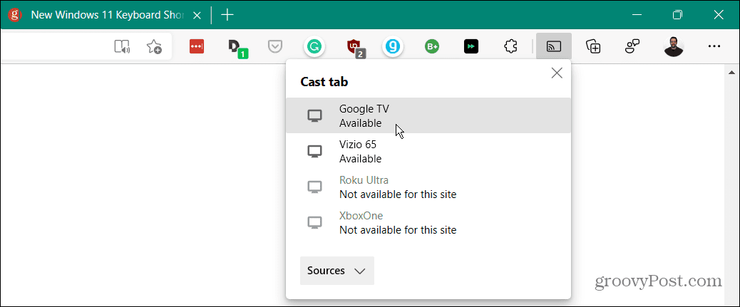 如果您想仅使用内置服务将 Windows 11 桌面投射到 Chromecast,则需要使用 Microsoft Edge 浏览器来执行此操作。