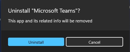 - 将出现一个弹出窗口,询问是否允许卸载 Microsoft Teams。点击卸载。