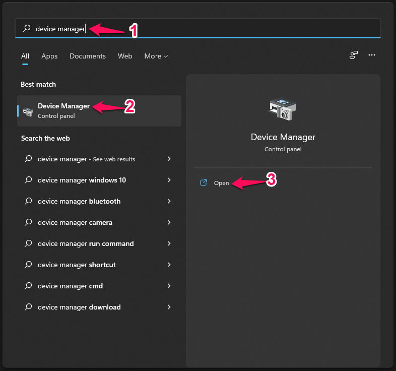 - 首先,通过 Windows >> 搜索打开设备管理器。