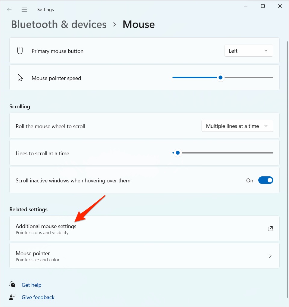 - 继续“鼠标”并滚动以找到“其他鼠标设置”。