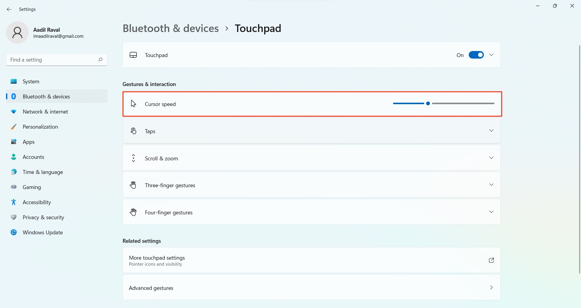 - 查看“手势和交互”下的“光标速度”并进行更改。向右轻弹会增加灵敏度,反之亦然。