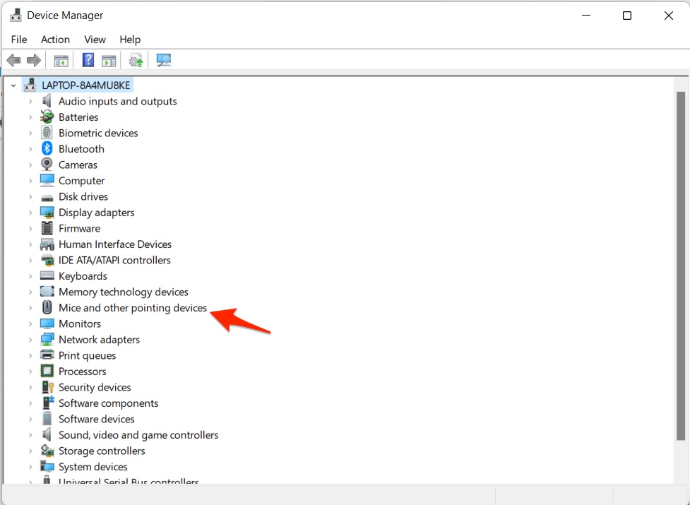 - 在“鼠标和其他点设备”下,查找鼠标列表。
