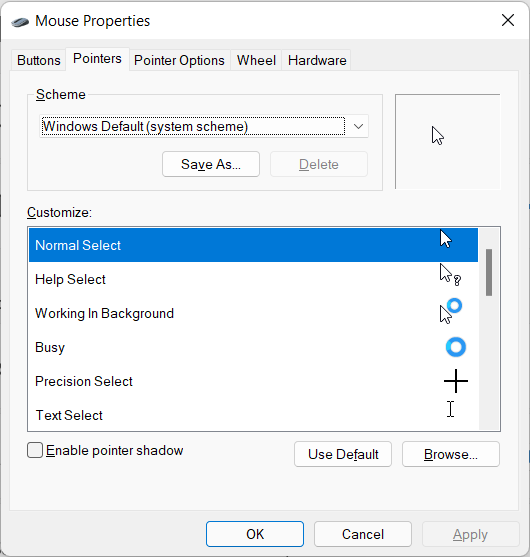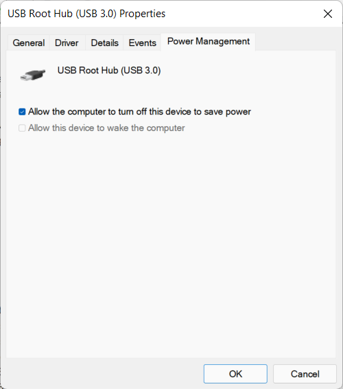 运行 Windows 11 的笔记本电脑上的电源管理系统很可能实际上会阻止外围设备运行以节省电量。它发生在 USB 设备上,并且您的鼠标使用 USB 连接到 PC;检查切换选项是否有任何不同。