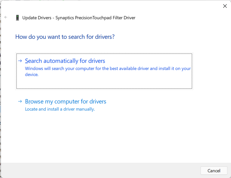 - 您可以让系统自动搜索或指向您在 PC 上本地下载的驱动程序。选择适当的选项。