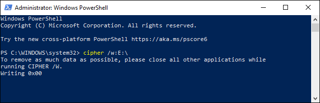 Windows 10 和 Windows 11 有办法做到这一点,但你必须访问命令行。cypherWindows 内置的命令有一个选项,可以擦除驱动器的可用空间,用数据覆盖它。该命令实际上将运行三遍,首先用零写入,然后是另一种类型的数据,然后是随机数据。(但是,只需通过一次就足够了。)