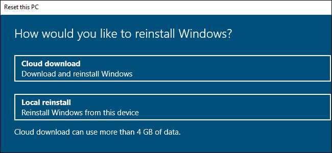 如果您的本地 Windows 操作系统文件已损坏并且重置此 PC 进程将无法正常工作,“云下载”非常有用。此外,不管你信不信,云下载比本地重新安装更快,因为 Windows 只需下载安装文件,而不是从计算机硬盘驱动器上的文件重新组装它们——这取决于你的互联网连接速度。
