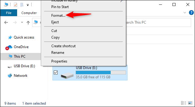 首先,打开文件资源管理器并找到要擦除的驱动器。右键单击它并选择“格式”。