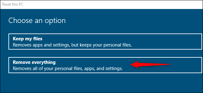 选择“删除所有内容”让 Windows 在重置过程中删除所有文件。