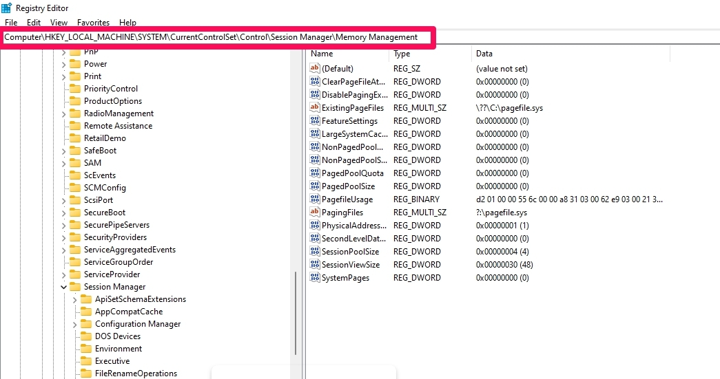 HKEY_LOCAL_MACHINE\SYSTEM\CurrentControlSet\Control\Session Manager \内存管理