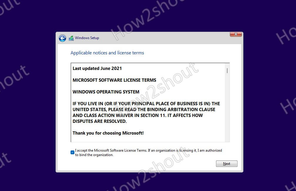 只需单击“下一步”按钮,系统就会自动格式化虚拟驱动器以安装 Windows 11。