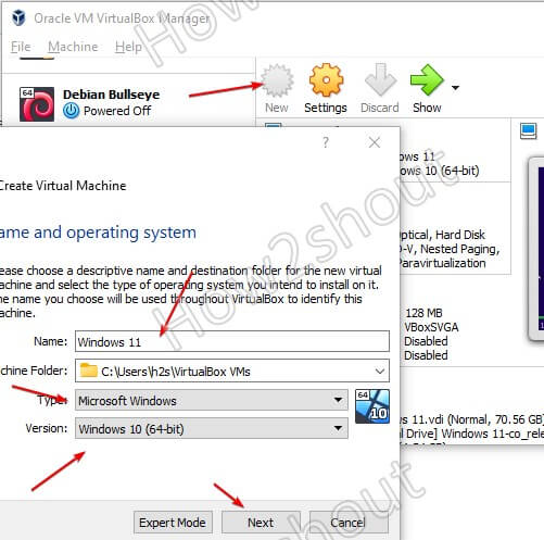 - 命名操作系统- Windows 11,然后选择类型“ Microsoft Windows ”+版本“ Windows 10 64-bit ”。