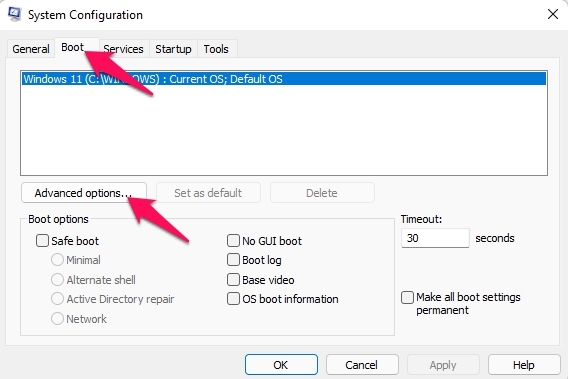 - 导航到Boot选项卡,然后单击Advanced Options。