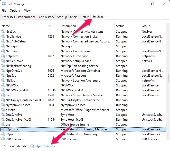 - 导航到“服务”选项卡,然后单击底部的“打开服务”。