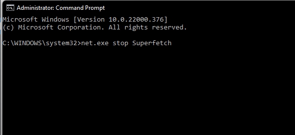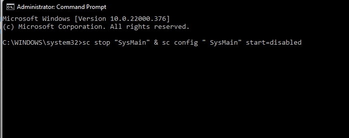 sc stop "SysMain" & sc config "SysMain" start=disabled