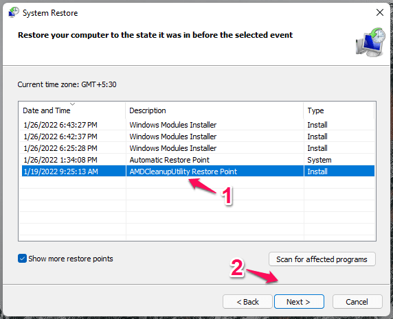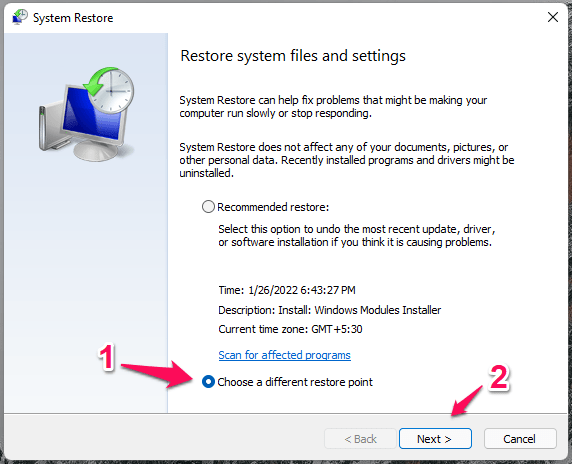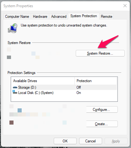 尝试将系统还原到较早的时间点,不要担心最终结果。您应该将 Windows 笔记本电脑连接到充电插座,以避免由于电池电量不足而导致过程中途。