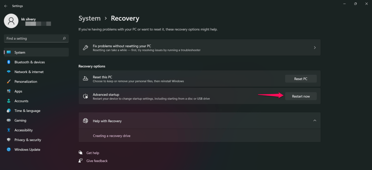 关闭命令提示符并在 Windows 11 机器中执行系统还原。