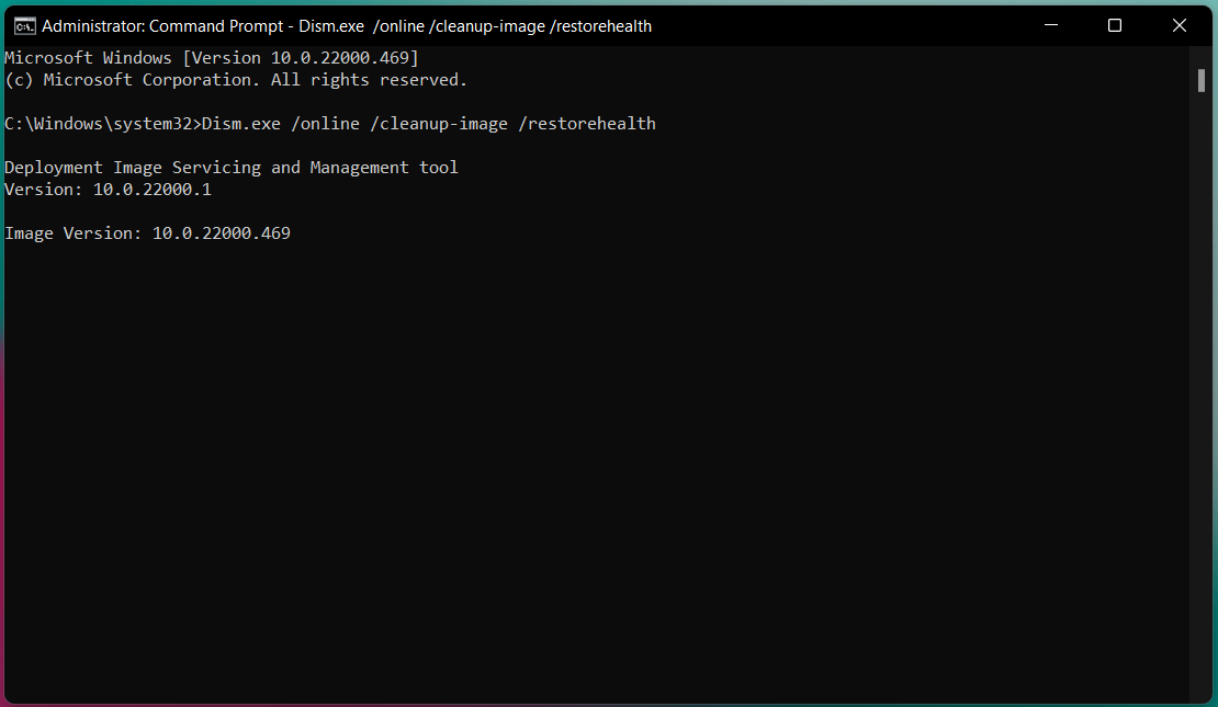 - 在命令提示符下复制并粘贴Dism.exe /online /cleanup-image /restorehealth 。