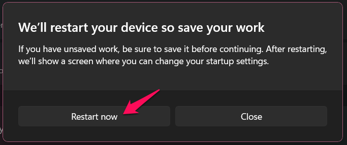 - 出现一个确认弹出窗口,然后单击“立即重新启动”。
