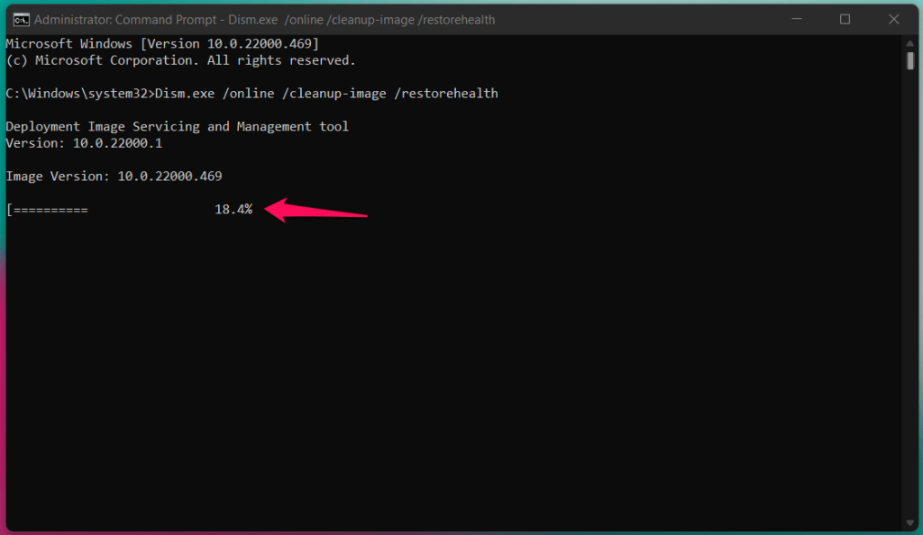 部署映像服务和管理 (DISM) 是 Windows 计算机中强大的内置工具。用户可以充分利用 DSIM 工具,恢复磁盘健康。运行DSIM工具并没有什么坏处,它会扫描机器以修复系统映像。您应该切换到 Windows 管理员帐户才能使用这些命令。