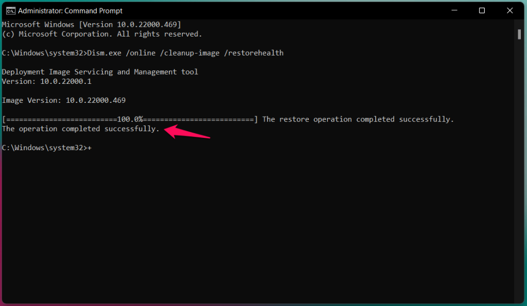 - 当屏幕上显示“操作成功完成”消息时关闭 CMD 。