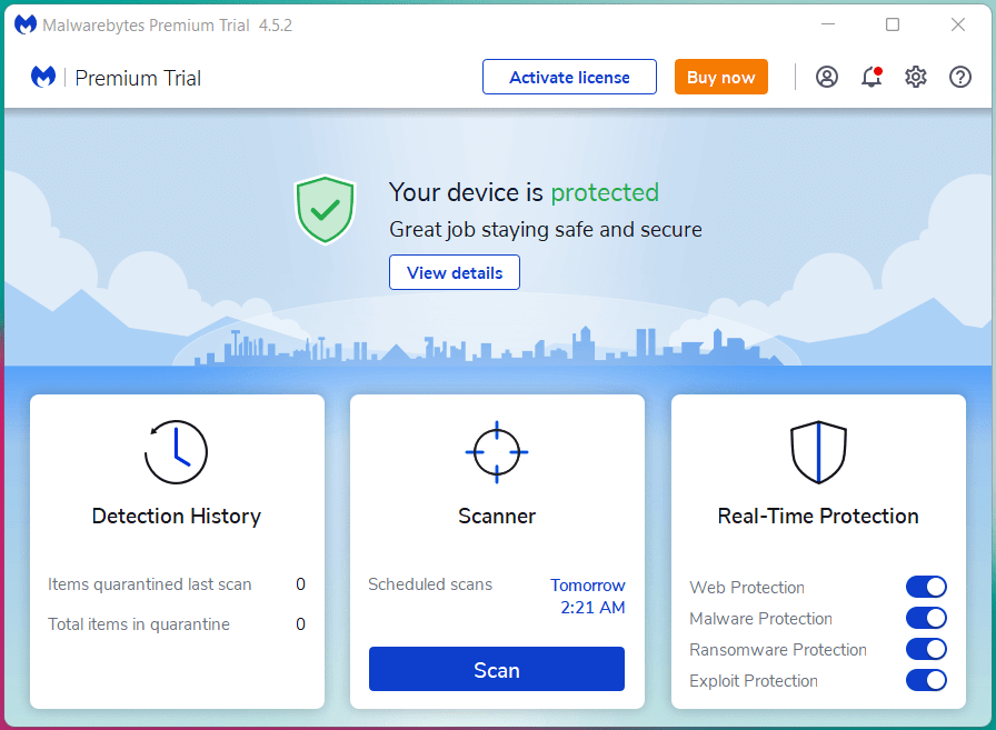 我总是在机器上安装了两个防病毒系统,但我在系统存储期间在笔记本电脑中安装了 Malwarebytes。您必须拥有来自不同提供商的安全系统,但这不会改变解决方案。暂时禁用防病毒系统,并确保关闭网络。我建议您关闭 Wi-Fi 路由器并移除 LAN 电缆。