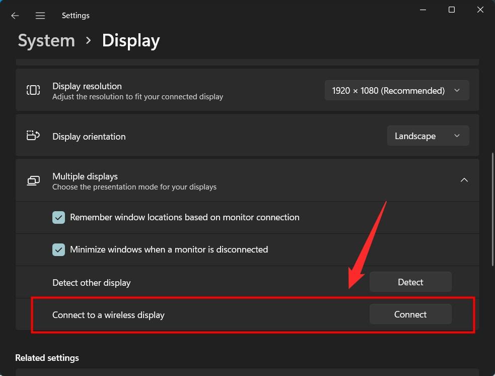 - 在这里,您需要检查“连接到无线显示器”选项是否可用。如果是,那么您的 PC 支持屏幕投射。