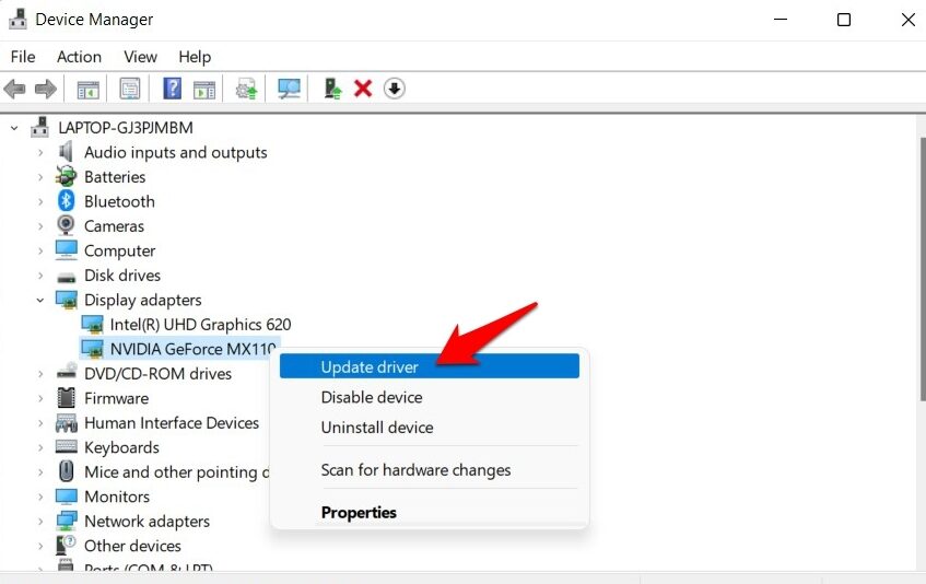 - 右键单击您的图形驱动程序,然后从出现的选项列表中选择选项更新驱动程序。