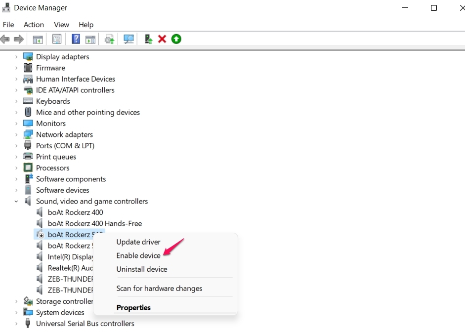 - 禁用所有驱动程序后,右键单击每个驱动程序,然后选择启用设备选项。