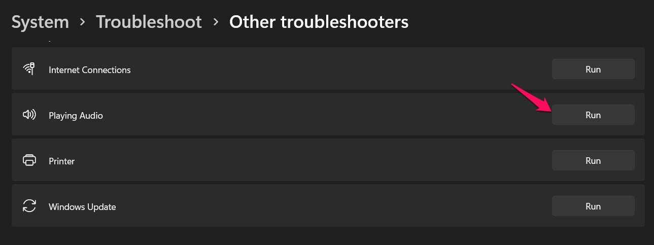Windows 操作系统带有一个内置的疑难解答程序。您可以使用它来解决系统中出现的任何小问题,包括音频渲染器错误。以下是在 Windows 11 上运行音频疑难解答所需执行的步骤。