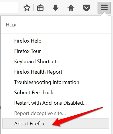 - 将出现一个新菜单。导航到关于 Firefox并单击它。