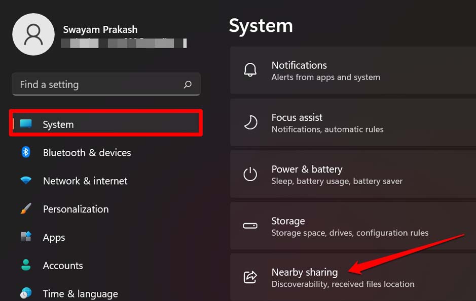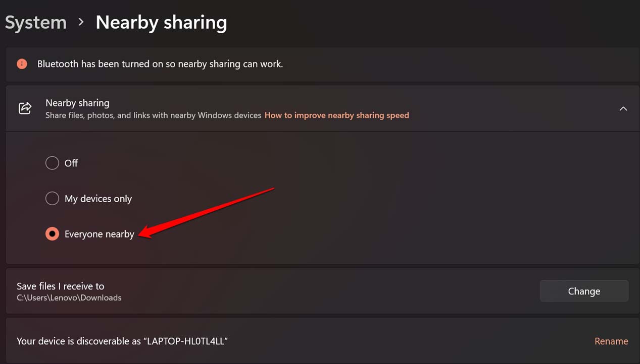 启用附近共享功能将有助于 PC 识别网络中的其他计算机和打印机。要启用它,