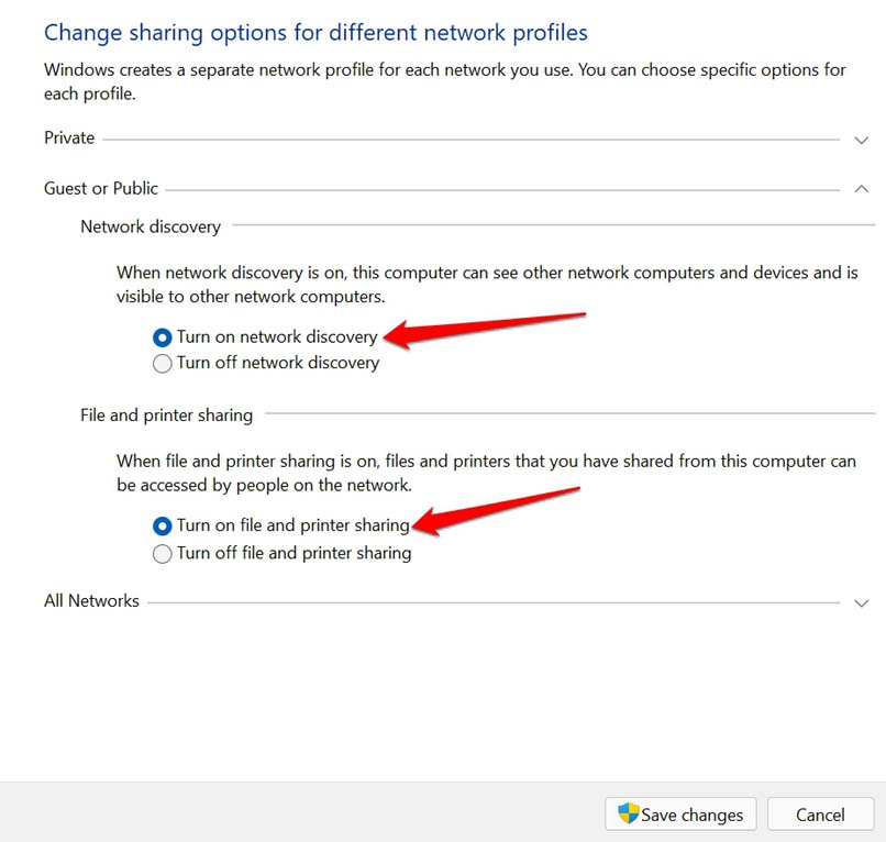 - 在弹出的下一页上,单击打开网络发现以启用它。