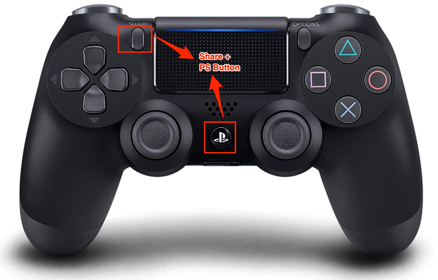 - 另一方面,对于蓝牙连接,您需要同时按住 PS 和 Share 按钮,直到指示灯开始闪烁。