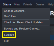 - 返回 Steam 并单击左上角的Steam 按钮。按设置。