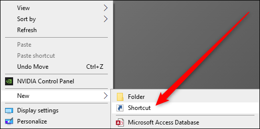 关闭并进入 BIOS 的命令可以很容易地变成快捷方式,以便更快、更方便地访问。右键单击桌面上的空白区域,然后选择新建 > 快捷方式。