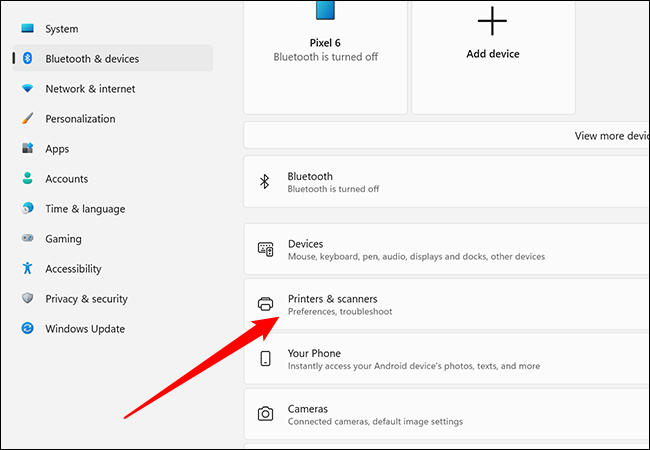 要添加打印机,请单击“开始”按钮,在搜索栏中键入“设置”,然后按 Enter。或者,您可以点击 Windows+i 打开设置。在“设置”菜单的左侧,单击“蓝牙和设备”。