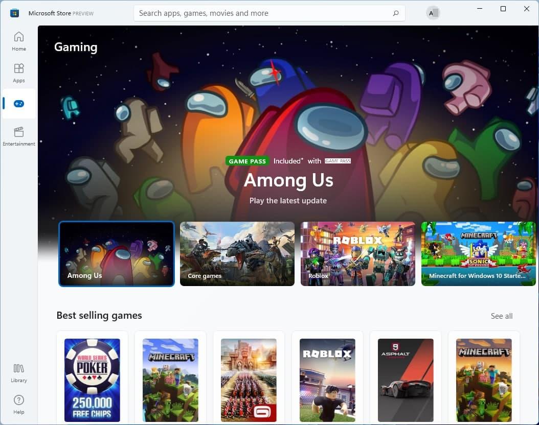 Microsoft Store 布局有一个侧边栏可以转到主页,在应用、游戏和娱乐部分之间切换。与应用程序的巨大磁贴相比,它的横幅很小。我今天早上使用的商店布局有一个选项可以将商店中的应用程序列入愿望清单,但也许它推送得太早了,因为我再也找不到这个选项了。