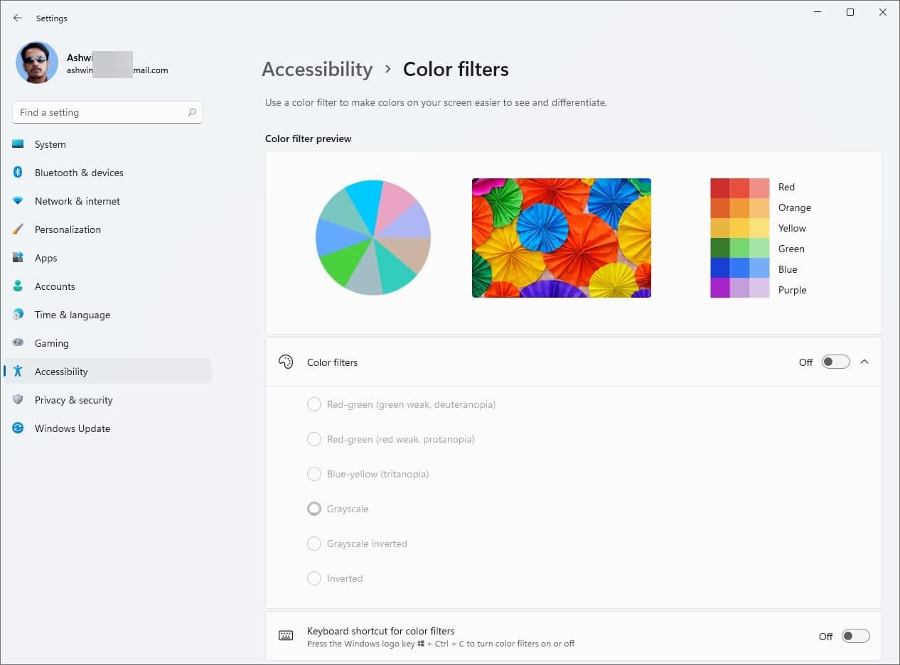 Windows 11 还添加了多个辅助功能选项,例如色盲过滤器、字幕、音频通知。