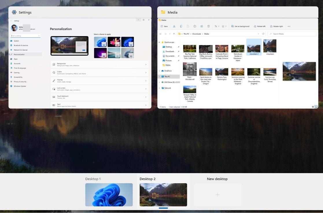 任务视图在 Windows 11 中得到了改进,允许您为每个桌面设置不同的桌面背景。您可以使用旧的热键 Win + Tab 访问它。