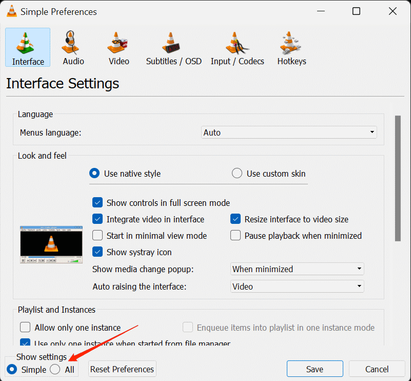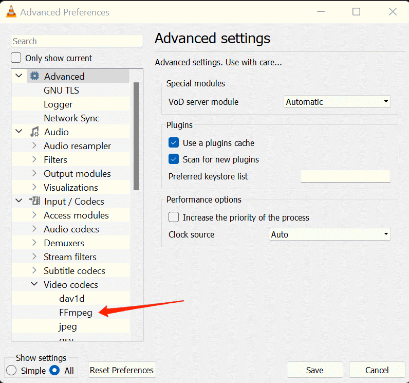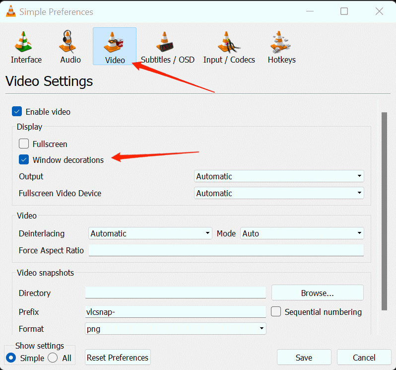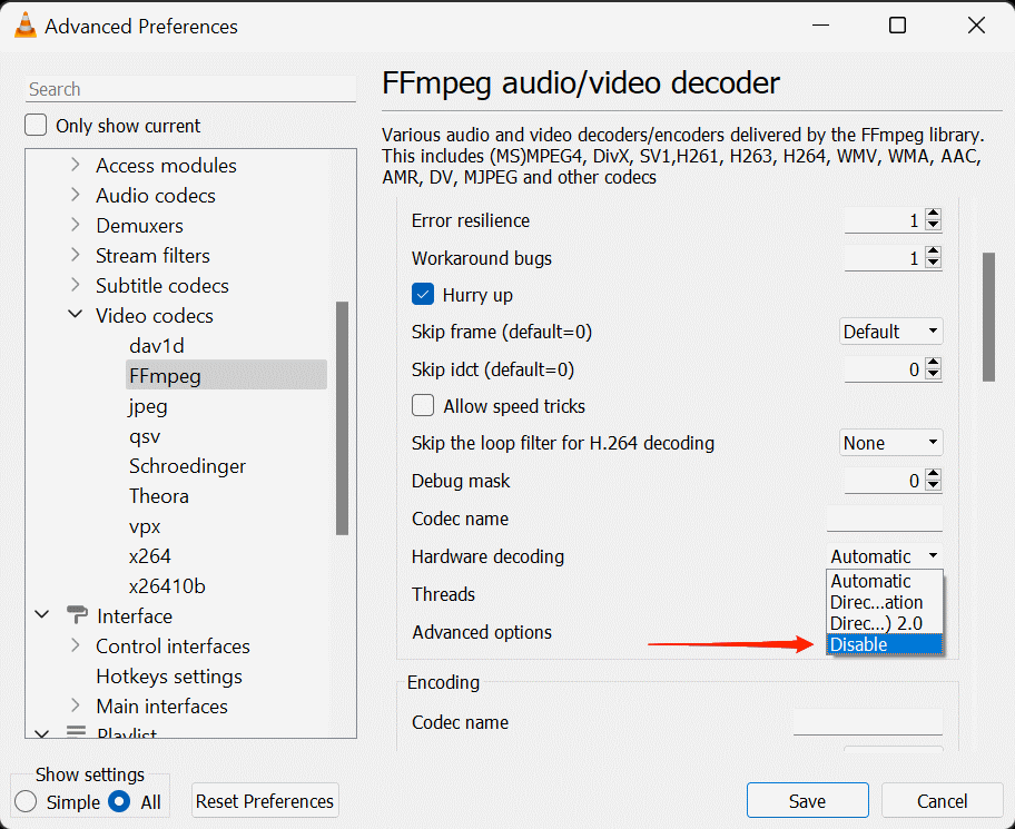 处理这种情况的最佳方法是禁用 VLC 中的硬件视频解码选项。为此,您可以参考以下步骤:
