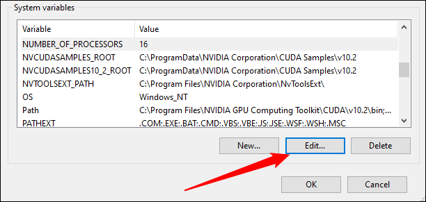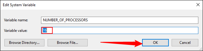 许多环境变量将简单地采用名称和值,例如“处理器数量”。编辑它们所需要做的就是更改值,然后单击“确定”。