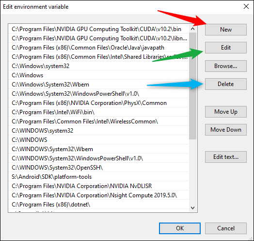 一些环境变量,如 Path,看起来有些不同,尽管它们的功能完全相同。Path 变量以列表形式给出,您可以从中添加、编辑或删除条目。