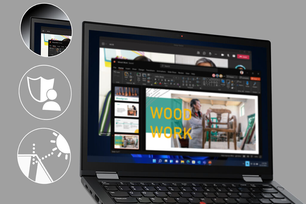 ThinkPad L13 和 L13 Yoga 现在有两种颜色,分别是雷霆黑和风暴灰。它们还配备 16:10 显示屏,包括采用联想 PrivacyGuard 技术的 500 尼特选项。这样可以防止人们在回头看时看到您屏幕上的内容。
