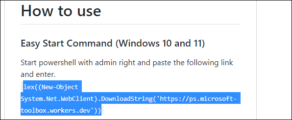 在您的 Windows 11 PC 上,导航到Web 浏览器中的 GitHub 页面,然后滚动到“如何使用”部分。复制“Easy Start Command”标题下列出的代码。
